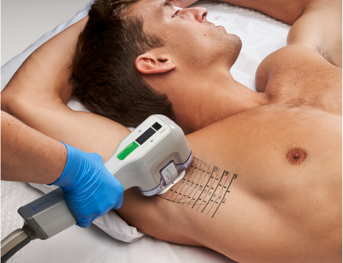 “La zona marcada se trata con MiraDry, que elimina la glándulas que producen sudor y mal olor. También remueve parte del vello axilar.”